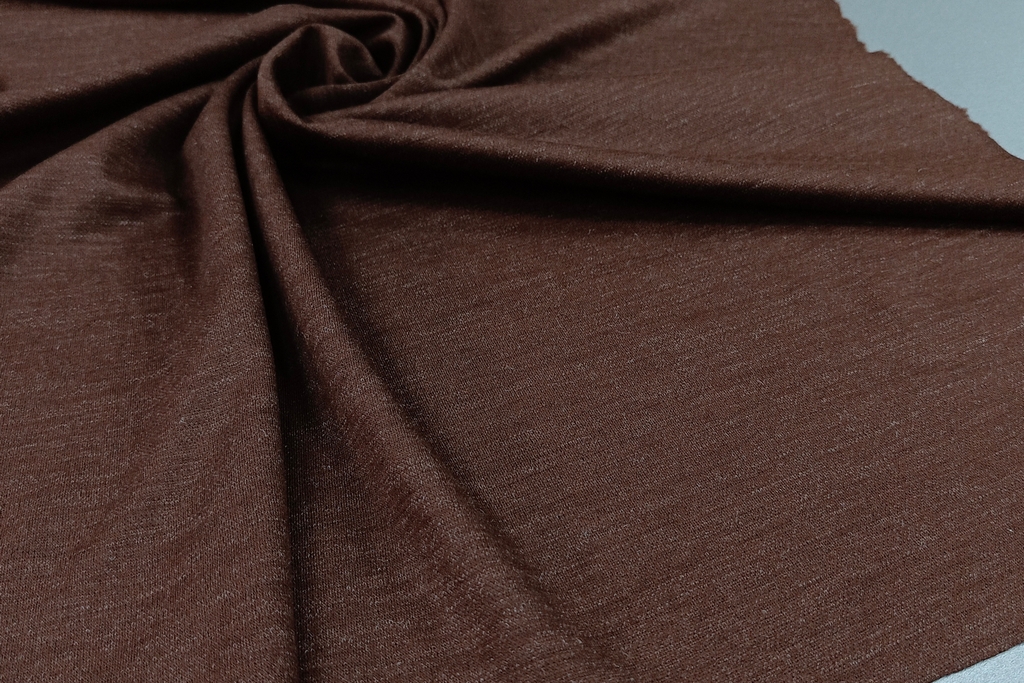 Трикотаж средней плотности вишневого цвета с вывязанной елочкой. Ткань мягкая и приятная на ощупь. Подойдет для пошива платья, свитшота, юбки или кардигана.